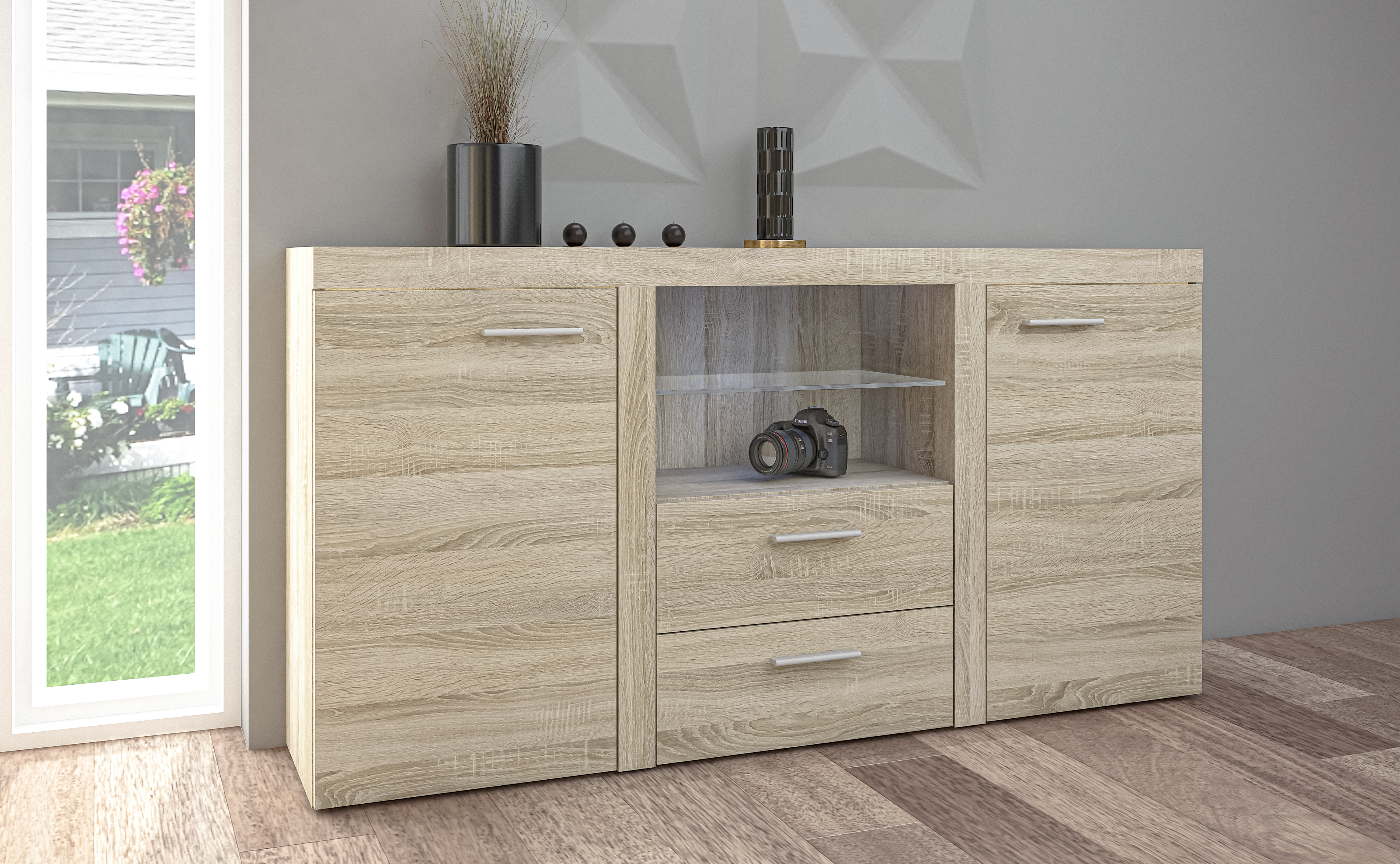 AX LIVING Buffet étagères avec portes Spacoro 3D commode chene sonoma