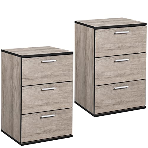 Yaheetech Lot de 2 Tables de Chevet Table de Nuit en Bois 40 x 35 x 60 cm Commode de Rangement Chambre à Coucher Moderne avec 3 Tiroirs pour Salon Bureau