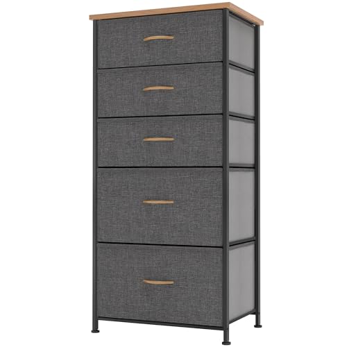 YITAHOME Commode, 5 Tiroirs en Tissu Commode Chambre Meuble de Rangement,Tour en Tissu,Cadre en Métal,pour Chambre à Coucher, Salon,Gris Profond