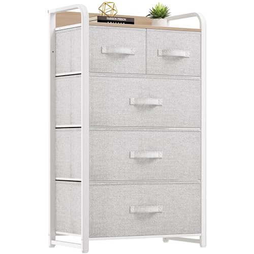 YITAHOME Commode, 5 Tiroirs en Tissu Commode Chambre Meuble de Rangement,Tour en Tissu,Cadre Acier Robuste,pour Chambre à Coucher, Salon,Gris Clair