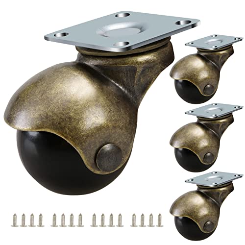 Lot de 4 roulettes pivotantes de 5,1 cm, parfaites pour petit canapé, armoire, commode, bac de rangement, roulettes pivotantes non marquantes, vis incluses