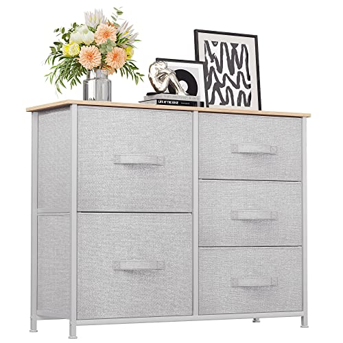 YITAHOME Commode, 5 Tiroirs en Tissu Commode Chambre Meuble de Rangement,Cadre en Métal,Style Moderne,pour Chambre à Coucher, Salon,Gris Clair