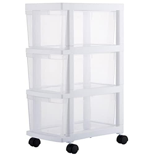 BAKAJI Commode peu encombrante de rangement, chariot fin transparent en polypropylène avec 4 roues et structure robuste polyvalente, organisateur grande capacité, résistant aux rayons UV (3 étagères)