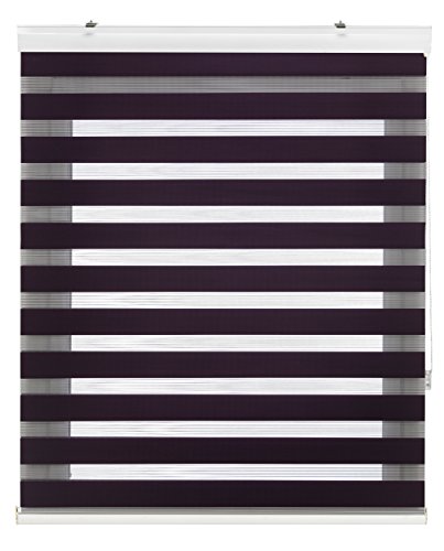 Blindecor Lira Store enrouleur jour nuit tissu double, couleur Violette, store zèbre 120 x 180 cm (largeur x hauteur) | Taille du tissu 117 x 175 cm. Stores tissu double élégants