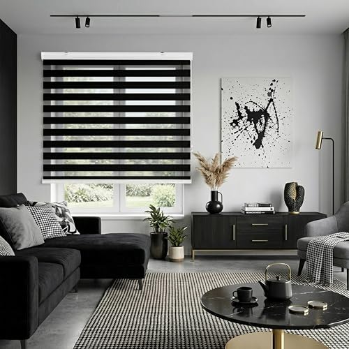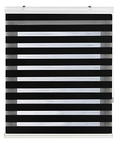 Blindecor Vela Store enrouleur double tissage prime avec galerie | Noir, store enrouleur 120 x 180 cm (largeur x hauteur) | Taille du tissu 117 x 175 cm | Store jour et nuit élégant