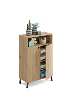 Commode de rangement 2 portes coloris chene dore - Hauteur 120 x Longueur 74.5 x Profondeur 40 cm --