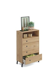 Commode de rangement 4 tiroirs coloris chene dore - Hauteur 120 x Longueur 74.5 x Profondeur 40 cm --