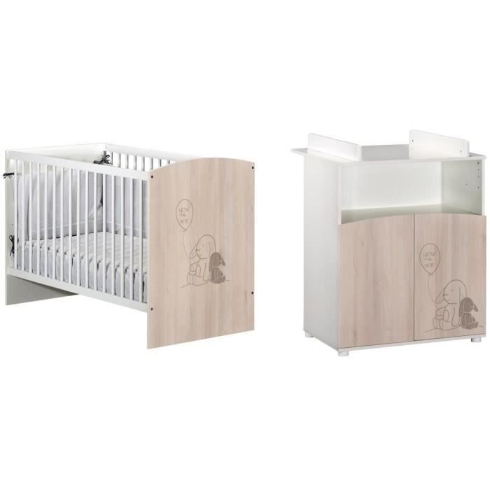 Chambre bébé duo Nao: lit 120x60 commode à langer - Babyprice - Blanc