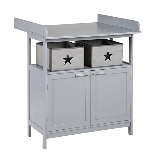 roba Commode à Langer Hamburg 2 Portes - avec Plan Amovible + 2 Boîtes de Rangement en Toile - Fixation Murale Incluse - Convertible en Commode de Salon / Taupe