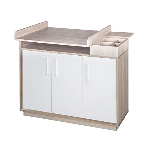 roba Commode à langer "Olaf" avec Plan Amovible - Compartiments et 3 portes à Fermeture Douce - Blanc/Décor Bois ( Luna Elm)