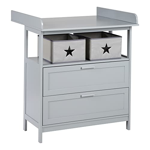 roba Commode à Langer Hamburg 2 Tiroirs - avec Plan Amovible + 2 Boîtes de Rangement en Toile - Fixation Murale Incluse - Convertible en Commode de Salon / Taupe