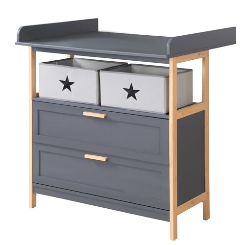 roba Commode à Langer Berlin en Bois de Bambou - 2 Tiroirs et 1 Compartiment - 2 Boîtes en Toile et Fixation Murale Incluse - Plan Amovible pour Transition en Commode Simple - Anthracite