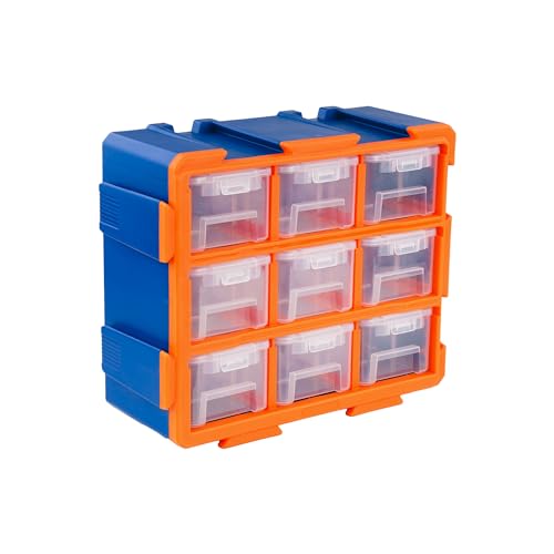 Brigros - Commode porte-pièce en plastique transparent, commode en plastique à 9 tiroirs, commode à objets modulaires pour garage ou atelier (9 compartiments)