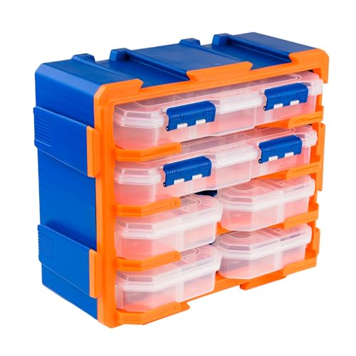 Brigros - Commode porte-pièce en plastique, 38 x 18 x 32 cm, commode en plastique, 4 tiroirs transparents, commode à objets modulaires pour garage ou atelier (6 tiroirs)