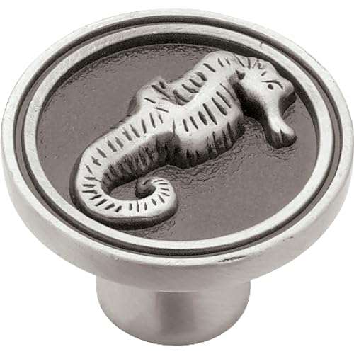 Franklin Brass Seaside Cottage Seahorse PBF661-BSP-C1 Lot de 5 boutons d'armoire en étain satiné brossé pour cuisine, tiroir, commode, porte de placard 3,5 cm