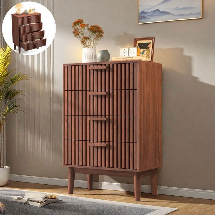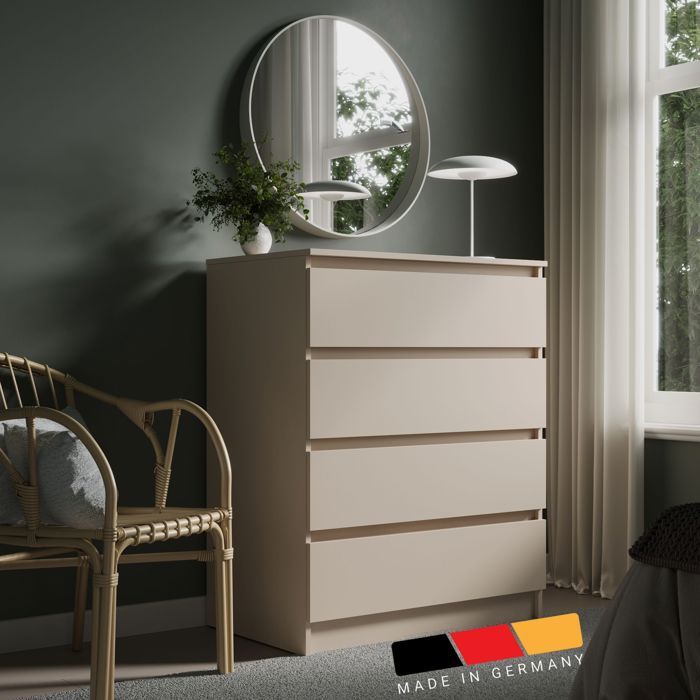 Commode de chambre 4 tiroirs - 80x50x100 cm - Commode blanche style scandinave - Meuble de rangement
