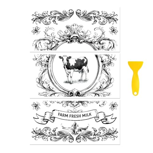 Peacoblue Autocollants de transfert pour meubles, décoration artisanale 15x30cm – Cadre vintage vache de ferme, 3 pièces imperméables UV DTF pour tiroirs, commodes, verre, porcelaine, bois, plastique