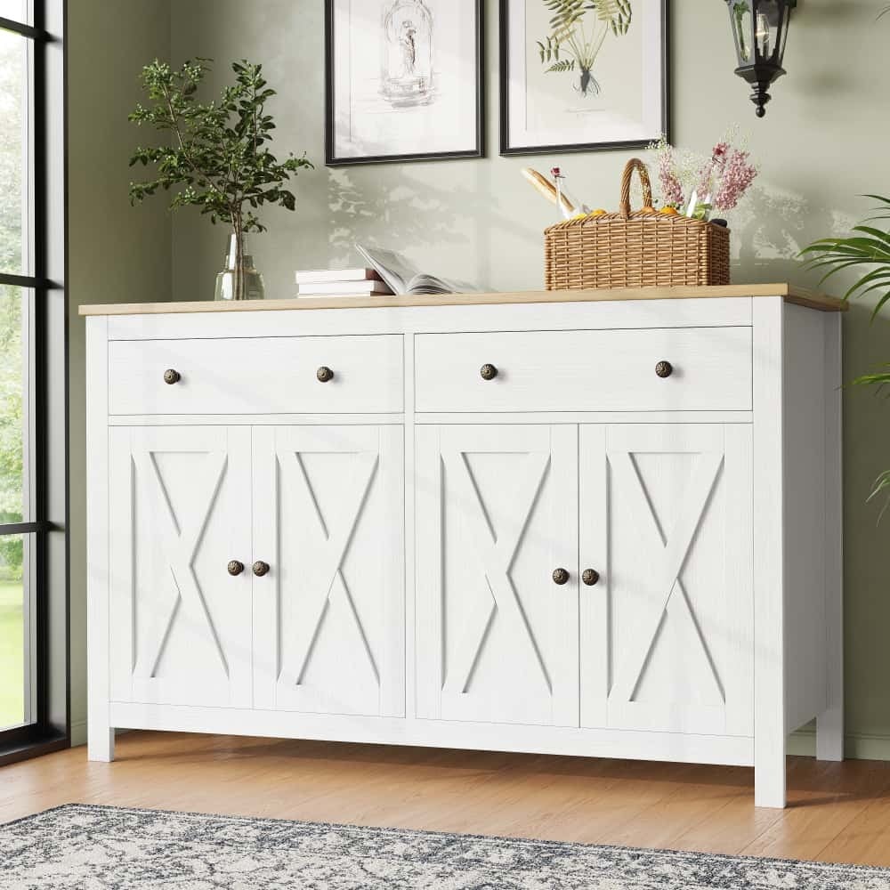 AIORBER Commodes Buffet, avec 3 tiroirs, 2 portes, 1 compartiment ouvert, beaucoup d'espace de rangement, design bicolore, pour salle à manger, salon, 150x38x76,5cm