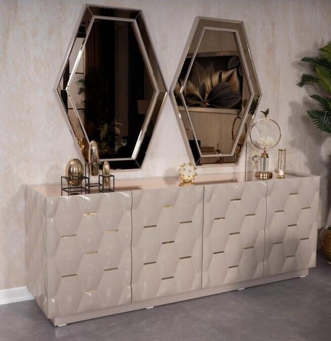 Vente Unique Commode 6 tiroirs, 3 niches et 1 coffre Avec miroir Blanc et doré ONISHA