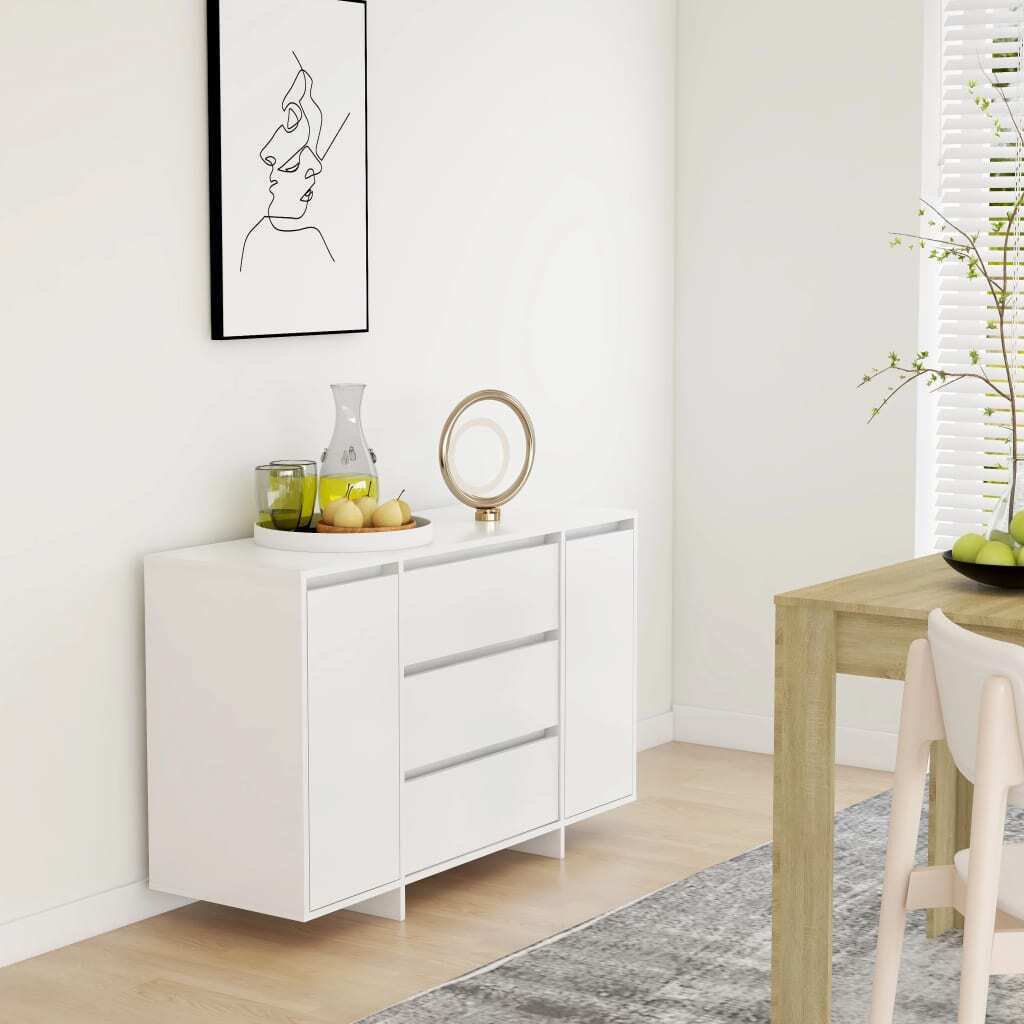 Meuble Buffet 3 tiroirs Blanc brillant 120x41x75cm Bois composite - Commodes 809617