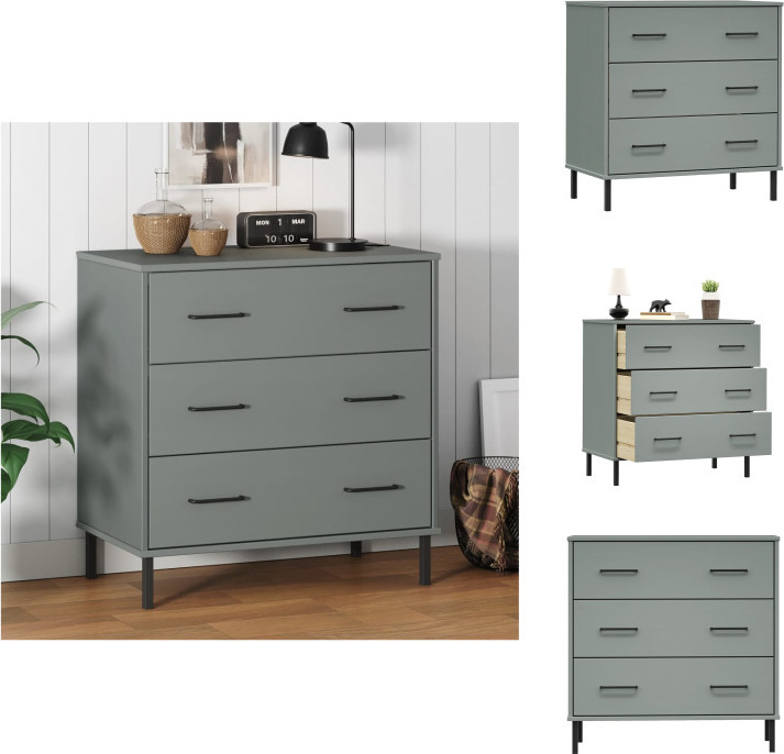 vidaXL Sideboard OSLO avec 3 tiroirs Gris 77x40x79,5 cm Bois massif - Commodes