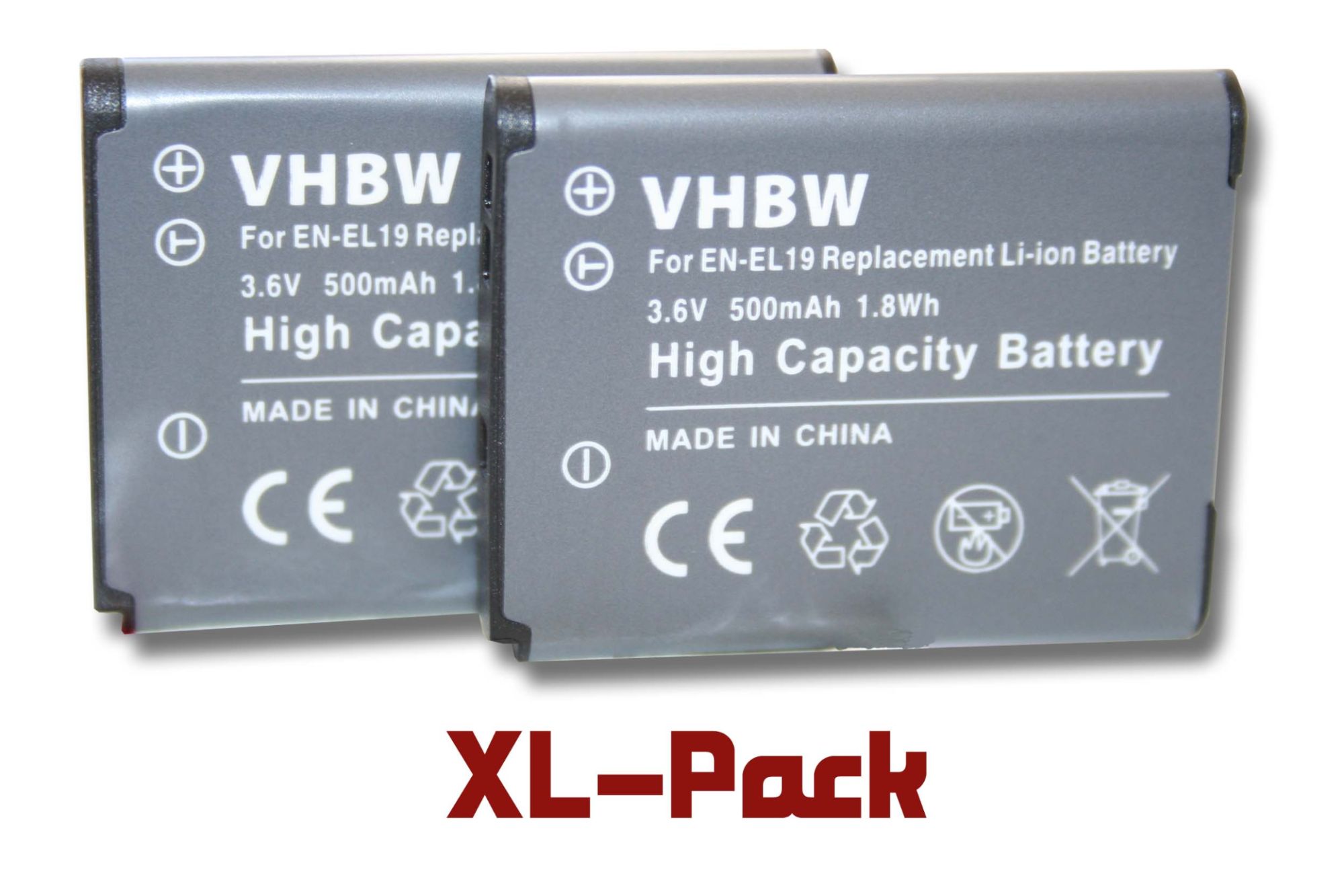 vhbw 2 x Li-Ion Batterie 500mAh (3.6V) pour appareil photo Nikon CoolPix A300, S100, S2500, S2550, S2600, S2800, S3100, S32, S3200, S33 comme EN-EL19.