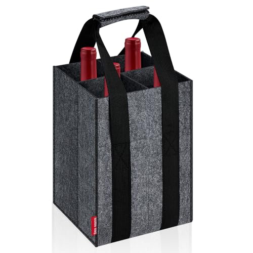 Eurhomewit Sac à Bouteilles 4 Compartiments, Sac à Vin avec Poignée, Sac de Rangement Réutilisable Porte Bouteille pour Vin et Champagne, 18cm x 18cm x 27cm - Gris
