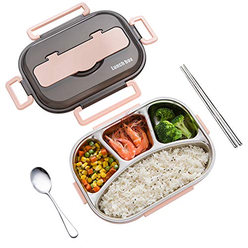 amropi Bento Box Lunch Box en Acier Inoxydable avec 2/3/4/5 Compartiments avec Baguettes, cuillère pour Enfants Adultes, Passe au Lave-Vaisselle (Rose, 4 Compartiments)