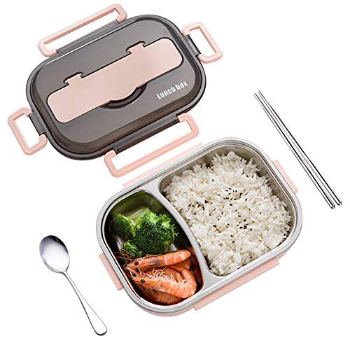 amropi Bento Box Lunch Box en Acier Inoxydable avec 2/3/4/5 Compartiments avec Baguettes, cuillère pour Enfants Adultes, Passe au Lave-Vaisselle (Rose, 2 Compartiments)