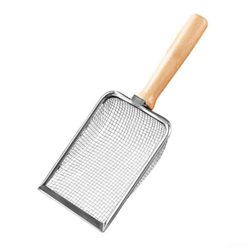 Tamis de jardin en acier inoxydable avec poignée ergonomique en bois, pour terre, sable, roches, compost (4,3 mm)