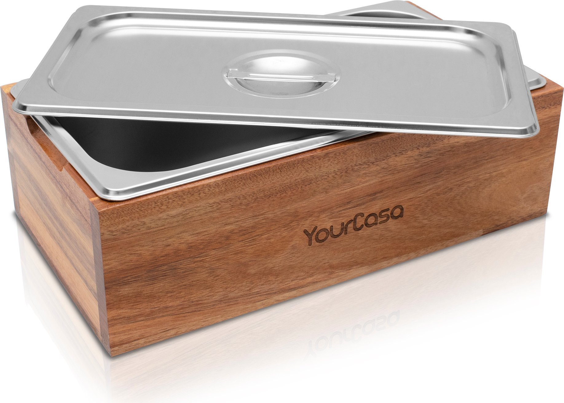 YourCasa® Poubelle à compost - Boîte en bois d'acacia - Poubelle à déchets biologiques pour la cuisine - Résistante au lave-vaisselle - Insert amovible en inox - Poubelle biologique pour la cuisine avec couvercle Déchets biologiques