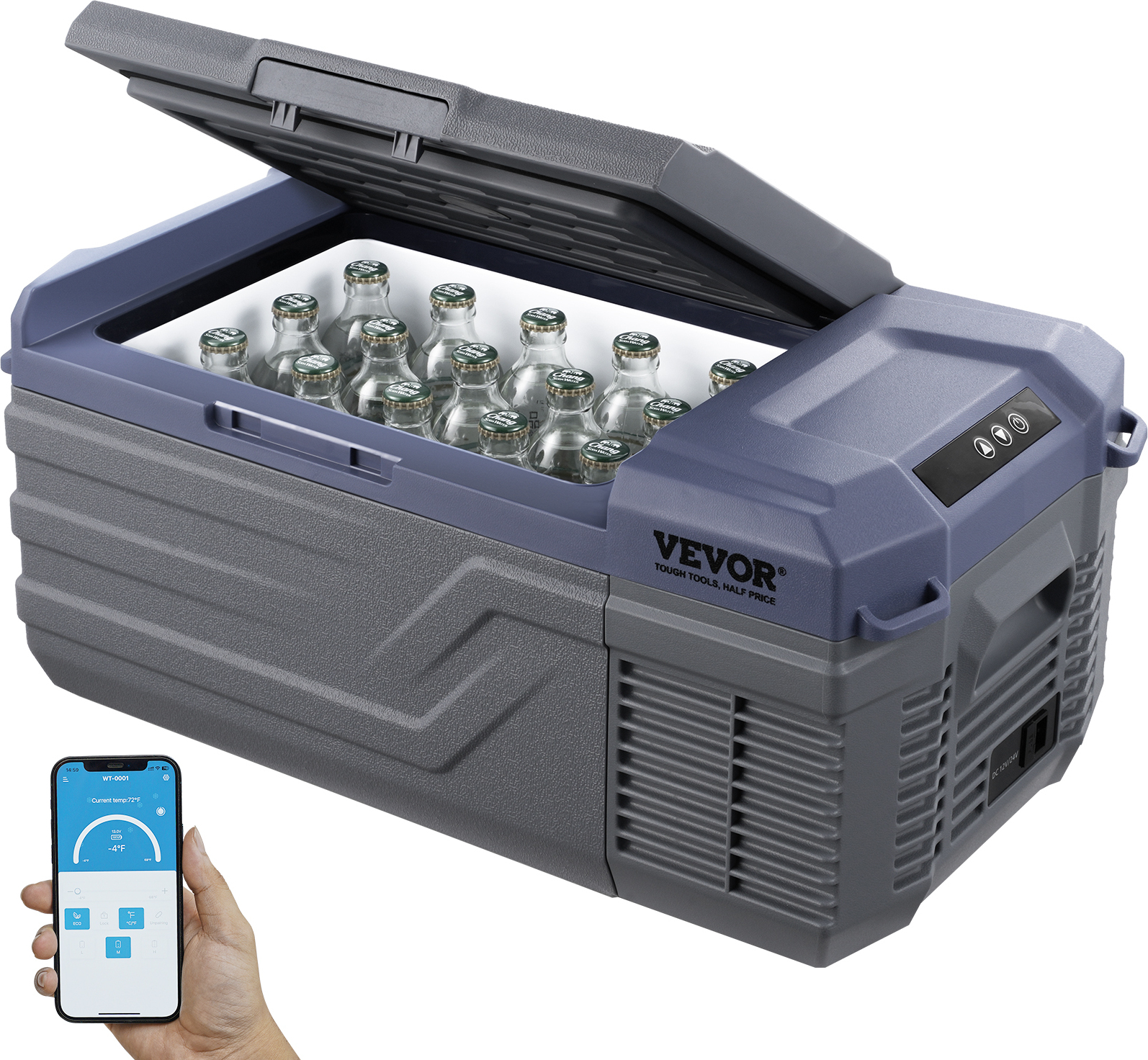 Réfrigérateur de voiture VEVOR, réfrigérateur de voiture 12 volts, congélateur portable de 70 litres à zone unique, plage réglable de -4℉ à 68℉, refroidisseur à compresseur 12/24 V CC et 100-240 V CA