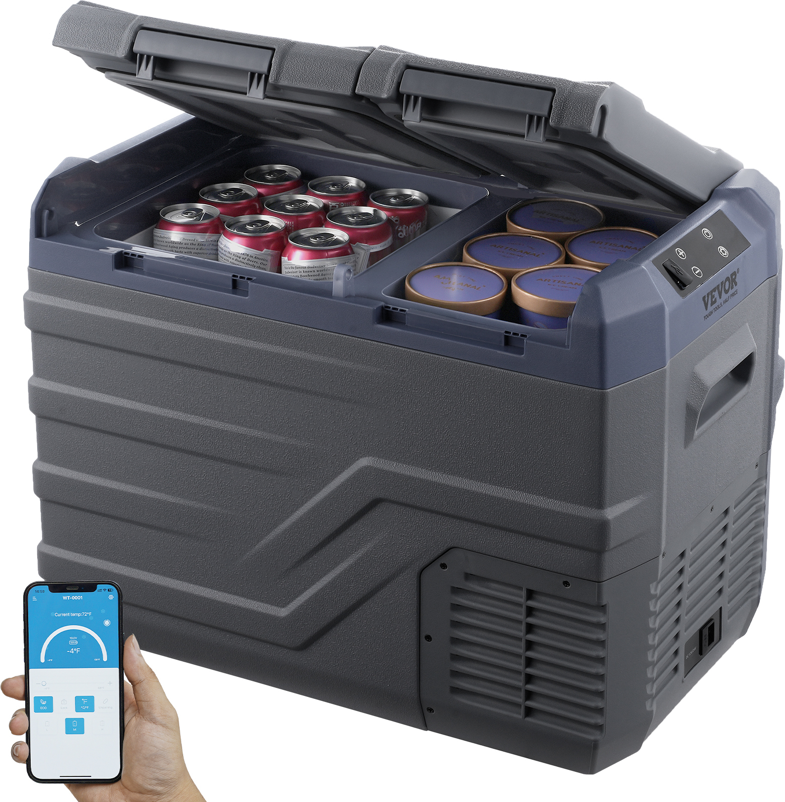 Réfrigérateur de voiture VEVOR, Réfrigérateur de voiture 12 volts, Congélateur portable de 42 litres à deux zones, Plage de réglage de -4 ℉ à 50 ℉, 12/24 V DC et 100-240 V AC-Compresseur refroidisseur Outdoor