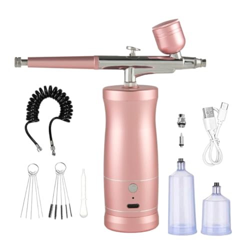 Giwnhvx Kit Aérographe Compresseur Aérographe Ensemble pour Nail Art Barbier Maquillage Peinture Rose