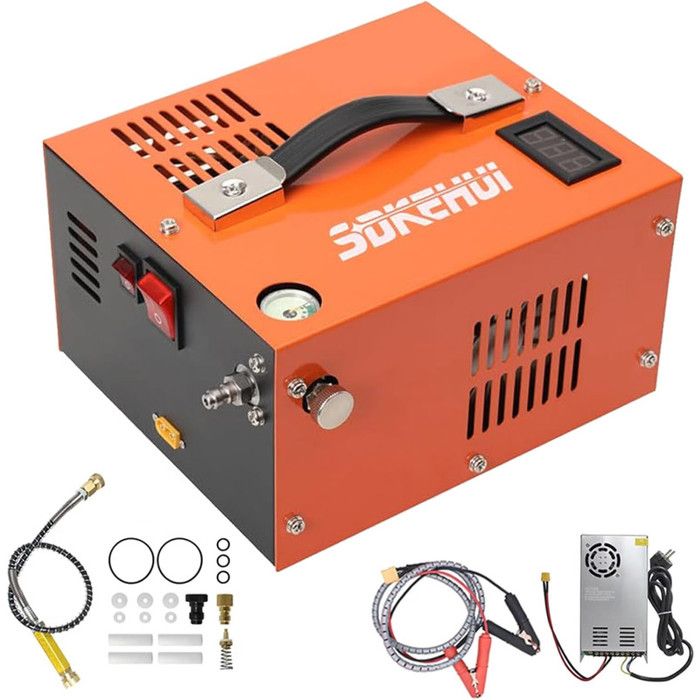 Compresseur D Air Portable 4500Psi 30Mbar 12VDC/220V 300W Avec Ventilation Interne Manomètre LED Refroidissement Air Pompe PCP