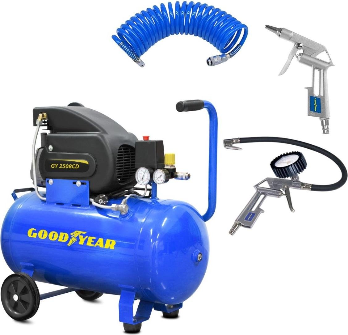 Compresseur d'air Silencieux 50 Litres 8 bar 2CV 1.5KW 115 PSI + Kit Air comprimé 3 pièces GOODYEAR