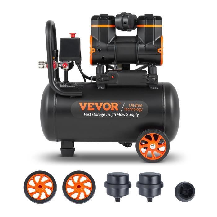 VEVOR Compresseur à Air Silencieux Sans Huile 24L 1450W 5,7m3/h à 6,2bar 70dB