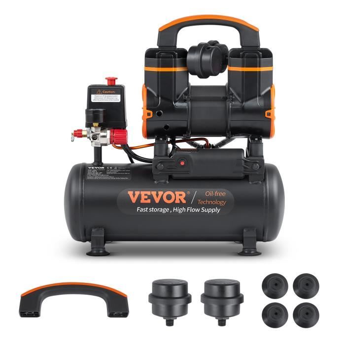 8 L Compresseur à Air Silencieux Sans Huile - VEVOR - 900 W 37 m3-h à 62 bar 70 dB