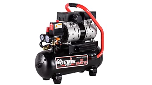 CEVIK PRO - CA-PRO6SILENT - Compresseur d’Air Silencieux - 62 dB - 6L - 1HP - Max 8 Bar - 110 l/min - Sans Huile - Deux Sorties d’Air - Compact et Portable - Compresseur Peinture Outils Pneumatiques