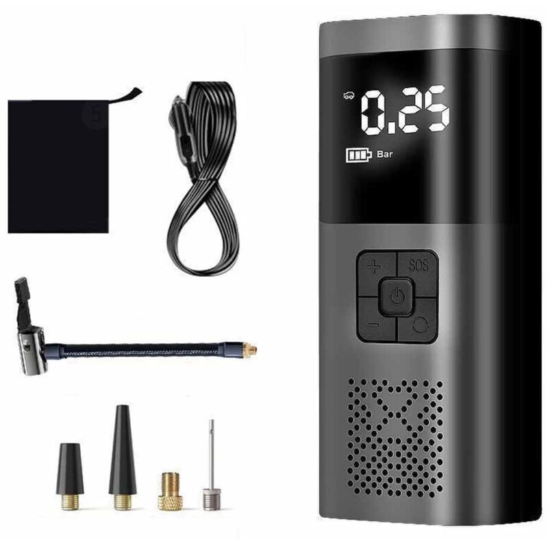 Compresseur d'air portable, mini pompe électrique 2000 mAh, pompe à vélo électrique avec écran lcd numérique, gonfleur de pneu de voiture