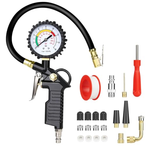 URAQT Manomètre Pression Pneu Numérique Gonfleur Pneus 220 PSI Compresseur Jauge de Pression des Pneus Numérique avec 6 Accessoires, Embout de Gonflage Pneu Manomètre pour Voiture Moto Vélo Camion