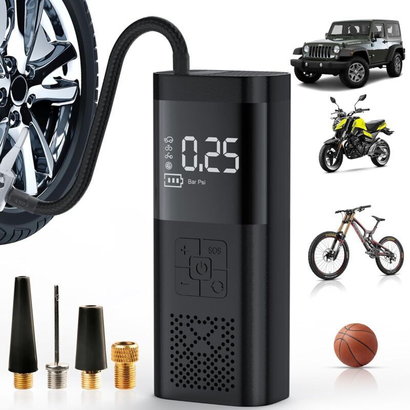 Gonfleur de pneu portable Compresseur d'air, gonfleur de pneu - Pompe à air de voiture sans fil | Pour voitures, SUV, camping-cars, motos, vélos, maison, voyage, bord de route