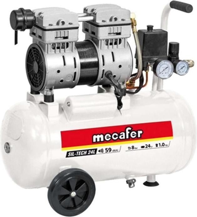 Compresseur Silencieux 24L, 1HP, 8 bar, 150 L/min, 750W, Mecafer