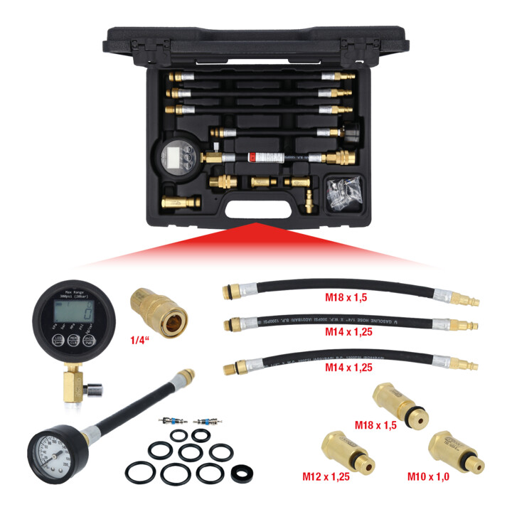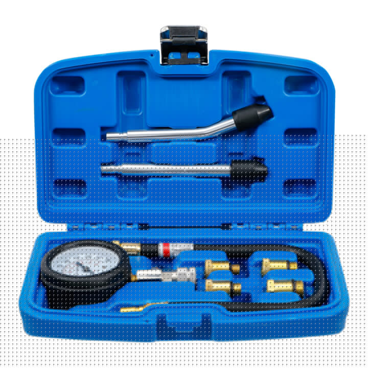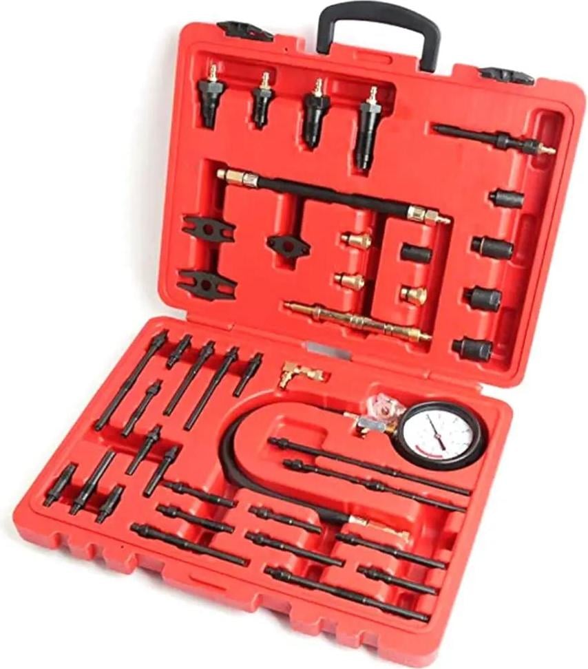 Testeur compression Compressiometre Essence auto moto bateau 9 pcs avec une mallette rouge Matériau: Acier C45