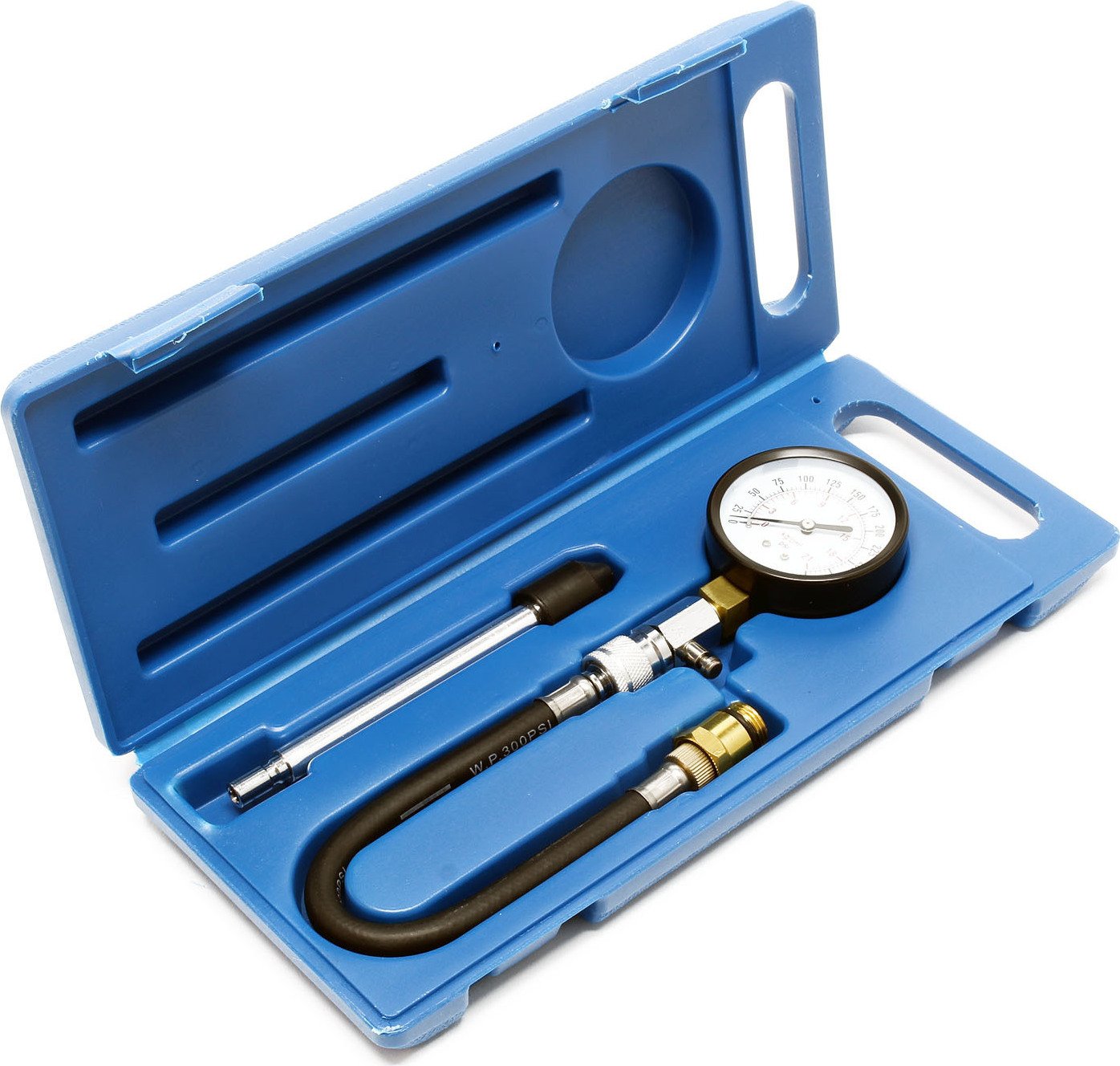 Wiltec Kit de compressiomètre - avec tuyau et manomètre - Outil de mesure testeur de compression pour la détection des fuites de cylindre des moteurs à essence