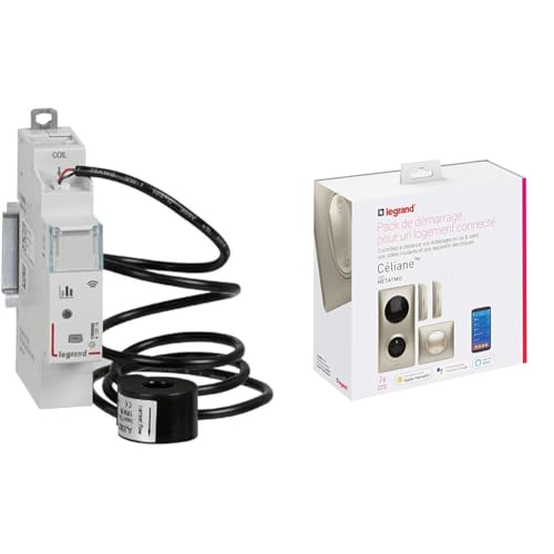 Legrand - Compteur d'énergie monophasé connecté Drivia with Netatmo avec 1 tore 80A avec Kit de démarrage connecté avec 4 produits Céliane with Netatmo - complet titane