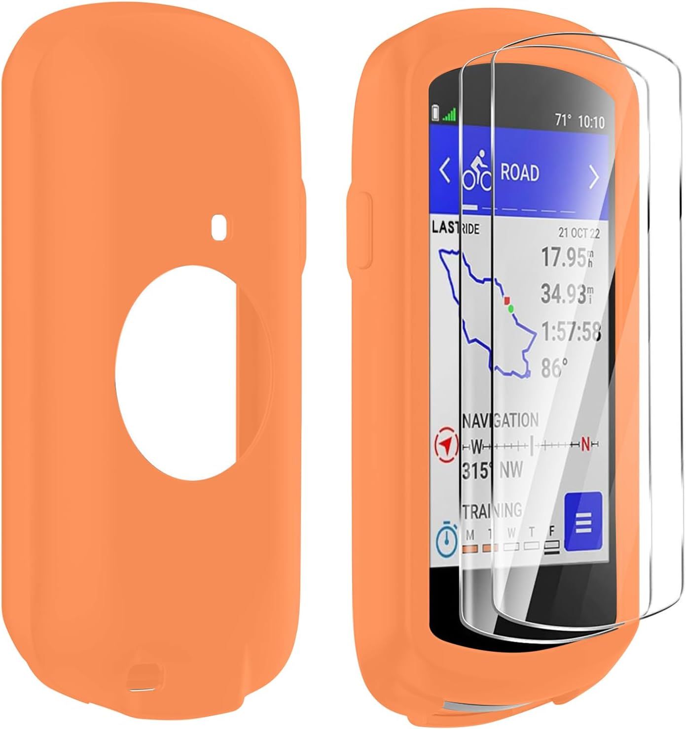 LETNERNY-Coque De Protection Silicone +2 Verre Trempé Compatible Avec Garmin Edge 1040,Film De Protection Écran Protecteur Gps Accessoire Compteur Vélo Pour Garmin Edge 1040 (Orange)