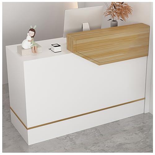 ZXCASDF Bureau D’Accueil,Comptoir Caisse Comptoir Accueil,Comptoir de Réception,Comptoir De Bureau,Petit comptoir de réception Moderne,comptoir de réception avec tiroirs(B-Light Walnut,120cm/47.2in)