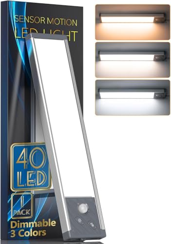 SIXRUN Lampe LED Sous-meuble avec Détecteur de Mouvement Rechargeable à Piles, 3 Couleurs à intensité Variable, Bande Lumineuse pour Comptoir de Cuisine, Escaliers