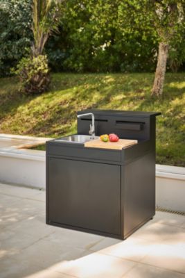 Meuble de cuisine extérieure en acier noir avec évier avec comptoir bar Forge Adour